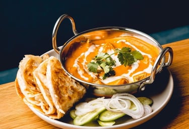Genießen Sie cremige Currys, würzige Tandoori-Gerichte und frisch gebackenes Naan.